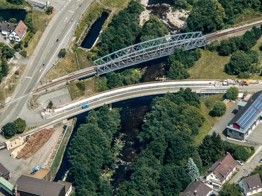 Die Brücke nach Au wird saniert Wildsee aus der Luft Wassertretanlage am Morgen Esskastanien in voller Blüte Blick vom Schützenhaus Die Kapelle einmal von anderem Blickwinkel Libelle am Gaisbach Taubenschwärmer Ideale Schwimmbad-Temperaturen Sporthalle: außen schon fast fertig saniert